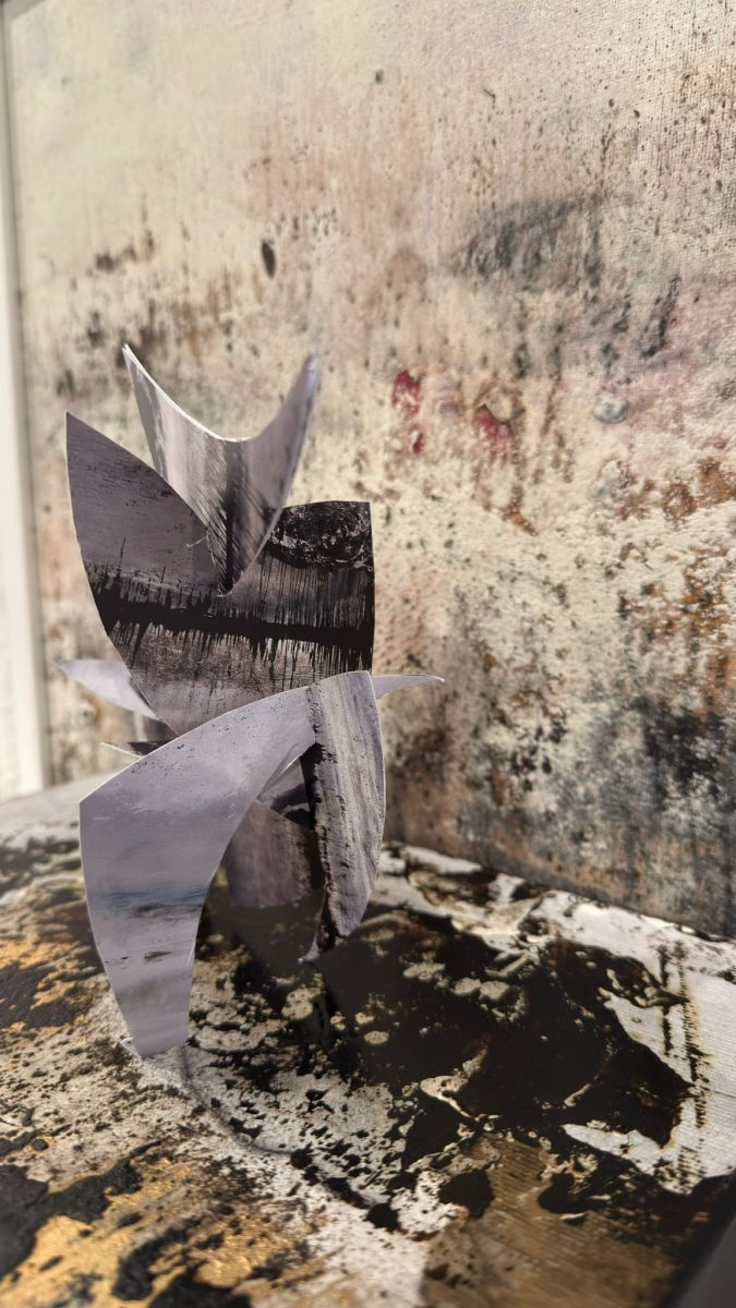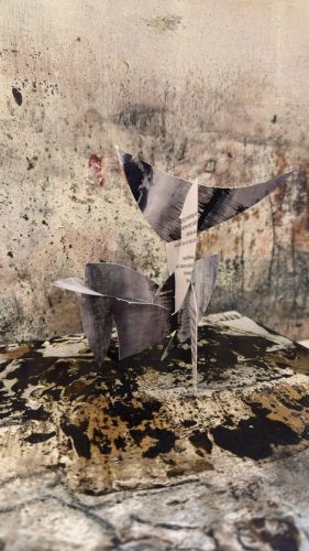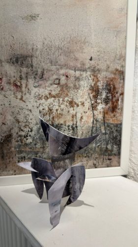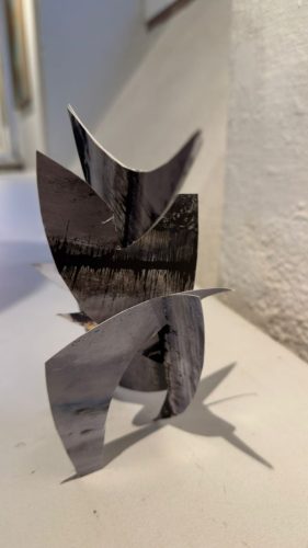 meine Kunstpostkarten zerschnitt, und eine kleine Skulptur daraus bastelte