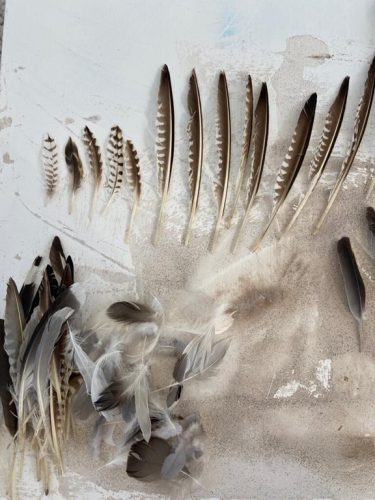 Federn, am Deich gesammelt, als die Zugvögel da waren