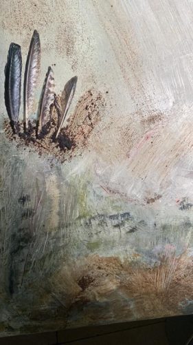 Wie gesagt: federn auf der Leinwand sind eine eigene Herausforderung