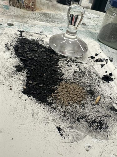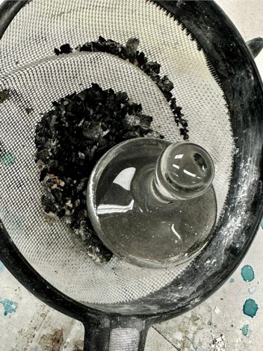 Wenn ich die Asche siebe, bleiben Rußbröckchen über, die werden dann gemörsert